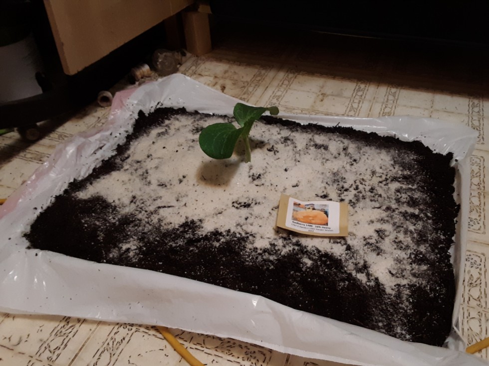Shallow tray, only a few inches deep of the home made potting mix, but the roots might spread outward more, which will be an important factor in getting a successful, shock free ultra early start. (My theory.)