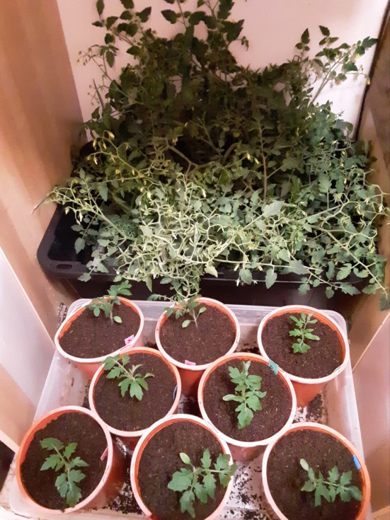 Potted the Young tomatoes up. In front 6.48 x 4 and 7.95 x 4. I'd be quite happy even if this was the only thing I was able to grow this year.