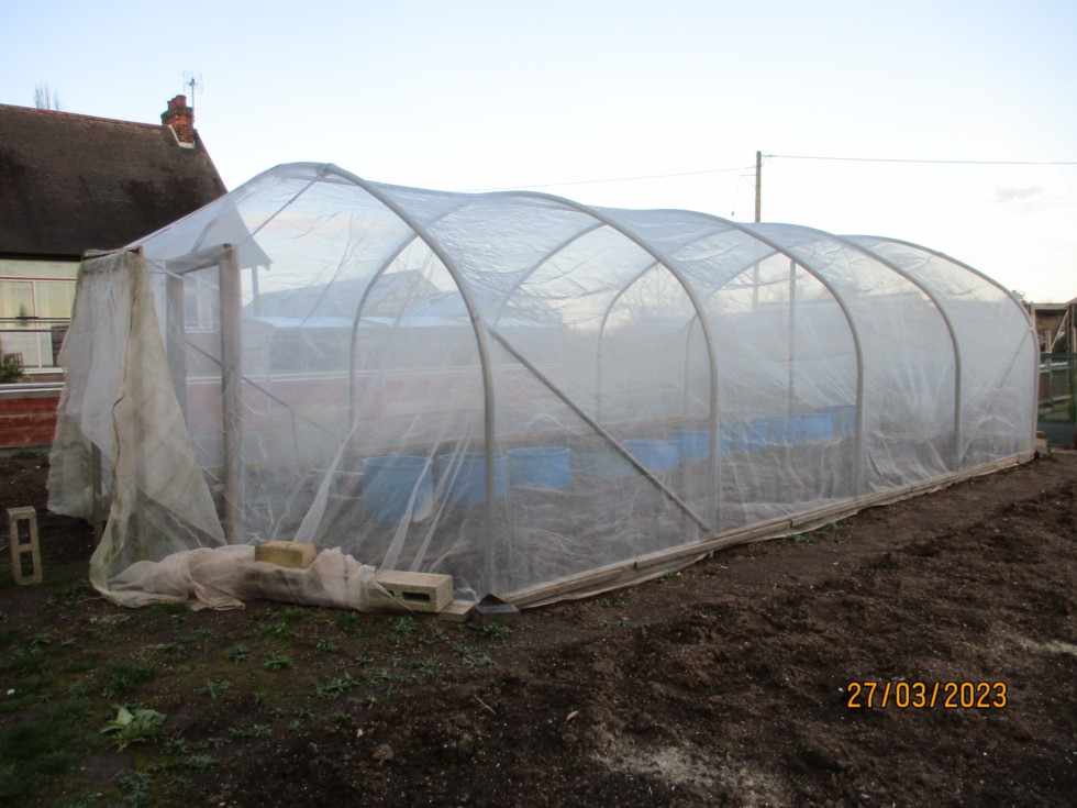 Recovered my netted tunnel ready for planting out. This is fine Enviromesh helps to keep pests away and also gives protection from strong winds. I take this of overwinter to stop any snow damage.