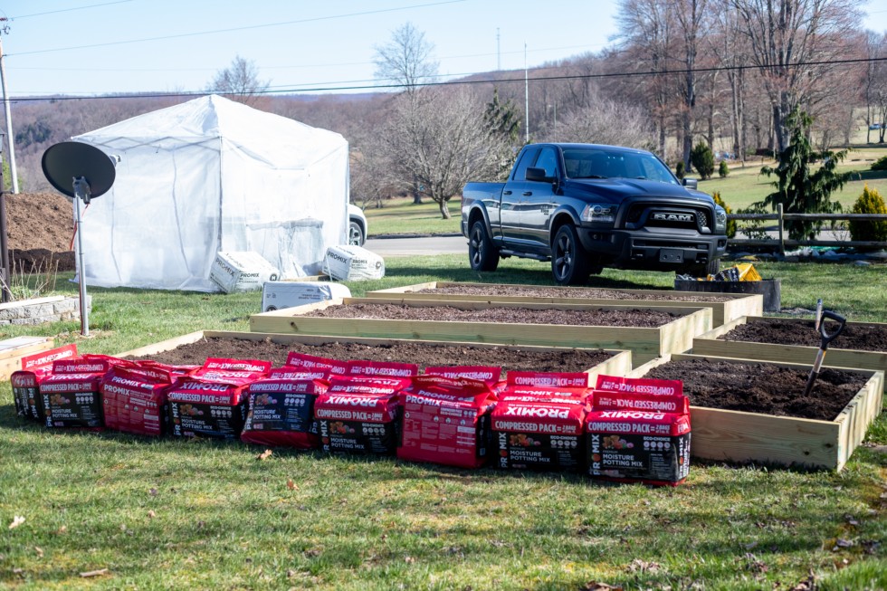 The other raised beds are for normal things I suppose. Put these up last minute after deciding to do tomatoes, they will be moved down by the patch next year. Depending which do better I'll add more raised beds or bags.