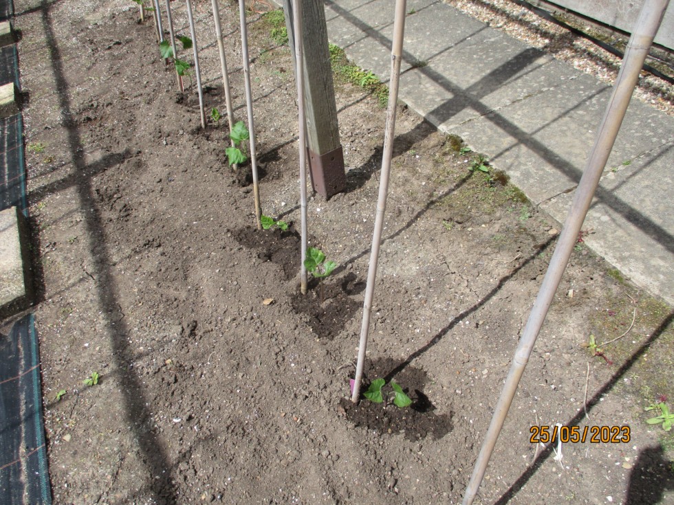 Planted first Runner Beans outside, weather has changed from very wet and cool to hot and dry.