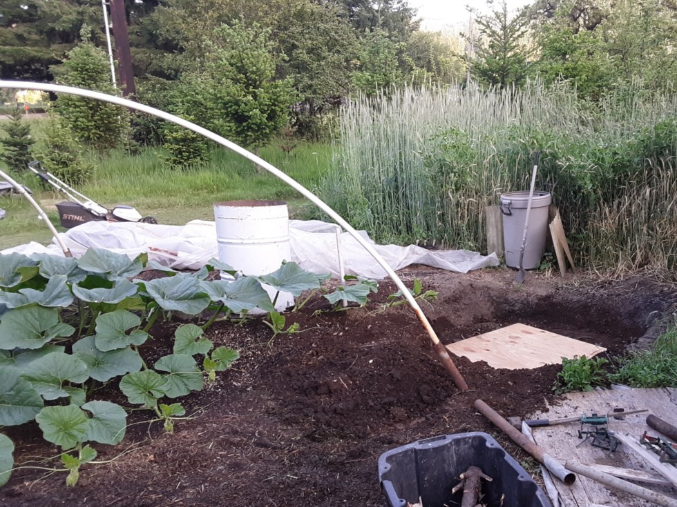 Rye made it to 6' tall, not sure if any of the seed heads will mature before the pumpkin vines reach them though. I discovered two more little pumpkins in the vine tip so my guess now is I could have a main vine pollination in about 4, 14, 18, or 20 days.