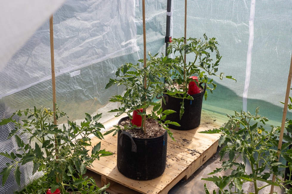 Tomato hut. Some flowers popping off, a couple big singles nothing to exciting. The 5 gallon plants are out pacing the 20 gallon ones. I think its because they got transplanted two weeks earlier into them. But we will take what we are giving. Going to start the last wave today.