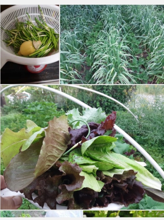 The garlic has been pushing up a pound of garlic scapes every day for the past few days. The potatoes are filling in nicely between the garlic rows. I could even see tomatoes and garlic working together but tomatoes have long roots that would be disturbed when the garlic was dug. Potato roots dont go as far. Poppies or sunflowers between the garlic? Maybe. But the fact that I can hill up the potatoes as I harvest the garlic makes that a logical choice. Carrots & garlic has worked in the past but I forget the planting dates that worked.