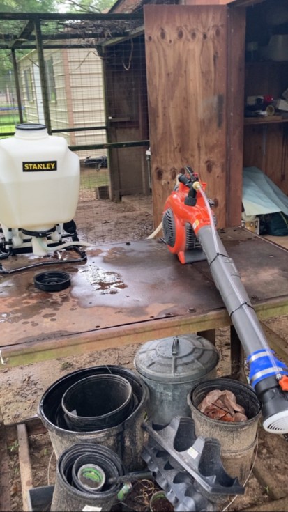 DIY mister is finally complete. This thing works great. Only took $60 in parts to adapt my existing Stanley 4g backpack sprayer and hand held gas blower. No more walking into the vine in awkward balance moves to spray evenly under each leaf!