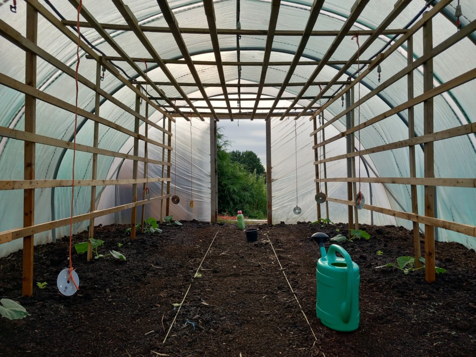 | Having a change this year, rather than grow just a 'pumped up' main vine up a piece of string I've decided to build a trellis and let them have some short side vines. |  |  |