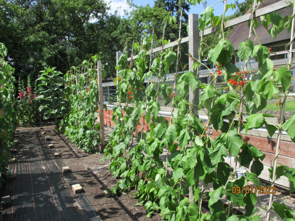 We have our garden open on the 19th, a little early to see really large vegetables but I am growing over 20 kinds so there should be something to see. First Runner Beans in flower today and good weather for them to set - hope for a better season than last year.