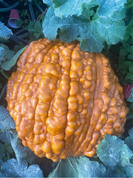 Used the same seed and got 2 very different looking pumpkins. They are both sibbed. This one is about 140 est pounds