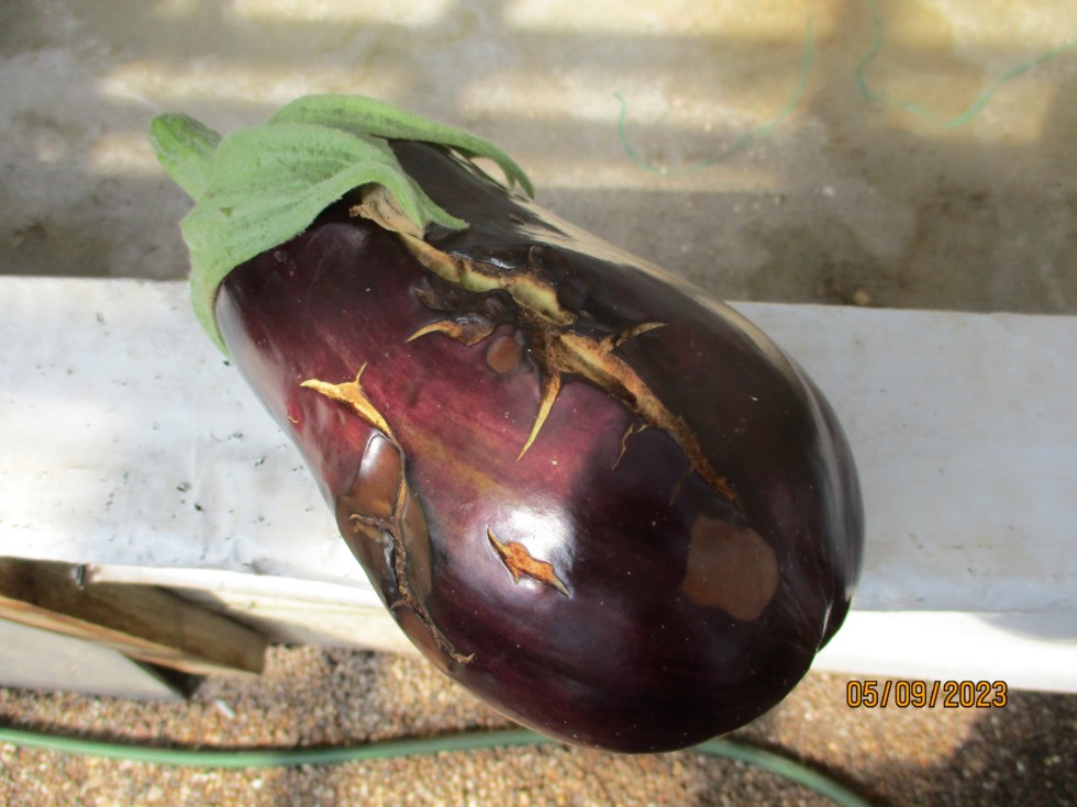 Finding it harder to grow a large Aubergine this year, had to remove this small one which had split and started to soften, I blame the changeable weather.