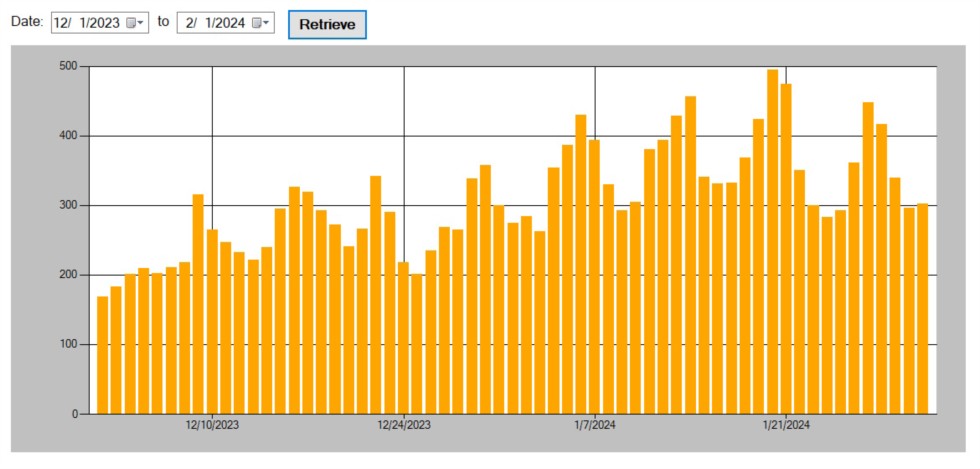 People often ask me, "how many people are on BigPumpkins.com?". This is a chart that show the number of registered users that logged on each day since the beginning of auction season. The traffic always spikes this time of year!