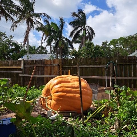 Tim has work to do to top his Beauty from last year. That was one pretty pumpkin. I love the picture of a pumpkin and palm tree.
