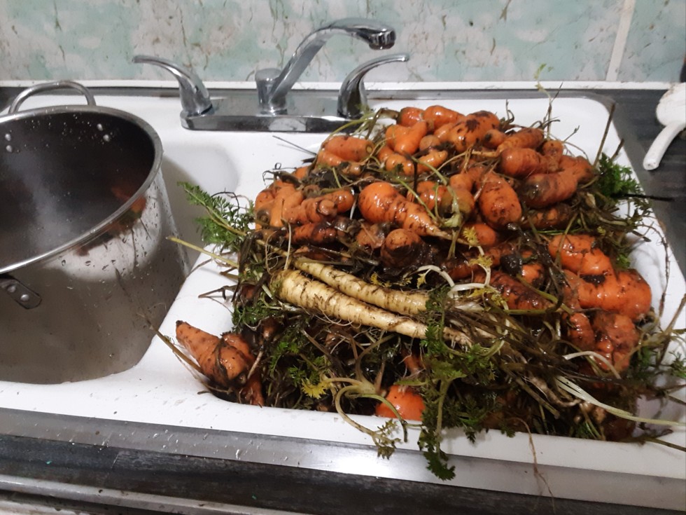 A few white "carrots" showed up. I must have mixed in some leftover giant parsnip seed.