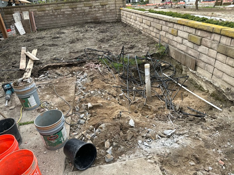 It's good to have a young guy to run the jackhammer. It took us 6 hours and we still have about 2/3rds of the footing to break out. We've already made to trips to the dump.
