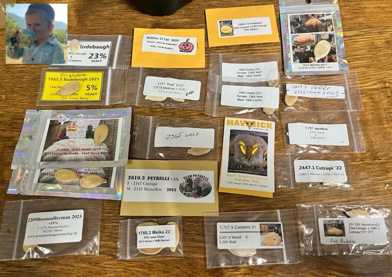 25 seeds, to try to grow 3 pumpkins. The seeds in the fridge don't do anything, you have to give them a chance. I'm looking for 9 for the 3 holes. (3, more 6 backups) and 6 pollinators. Only the best will make it. My favorites are 2365 and 2183, the third will be the best of the rest of the pots, and the next ones the bacups. Pollinators, I have tried to look for the best of the moment, and of different genetics. My favorite is 1357 Wolf. (Plant of the father of 2365). In a week we start , seddling the pollinators. I hope they are all born well and put me in trouble choosing the best ones. I love the 1780 Melka and 1893 ure�a and 2560 Travis, if it is a good plant I will have to decide between the 2560, 1893, the 1780, the 2610, 2502, 2447x 1707, 1727x it will be very difficult to choose the third. It's fantastic!! Lol