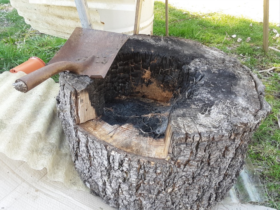 Soil temp 49 degrees. Its time to break out the rocket stove. A barrel of water fits easily onto this large wood round. Eventually it will burn the center out and I will have to make a new one, but overall its actually easier and better for me to do it this way. The log round will roll to wherever I want to hear some water.