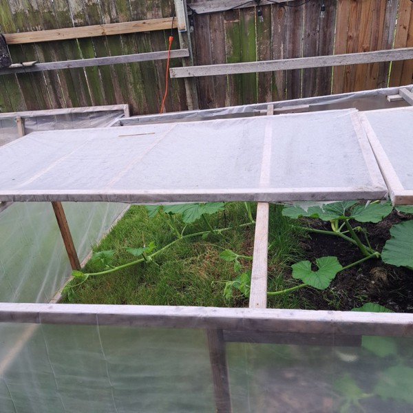 Not sure what to call Tim's expandable greenhouse but it seems to be working for him.
