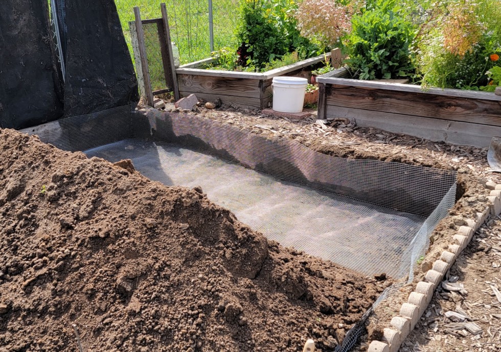 Took the day off from to work to improve my community plot. Manually moved lots of earth. I was put on probation last week for "abandonment" by the dreaded garden committee. I've never been so offended! Was just waiting for the soil to dry before finishing the gopher mesh project. Final third is now in. After all this back breaking work if I have to deal with more gophers/moles/voles I'm jumping off the Coronado bridge, lol!