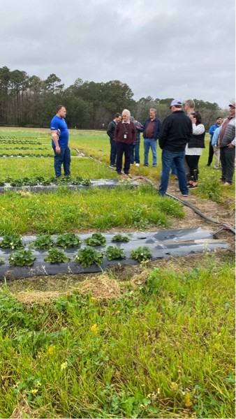 After melons and tomatoes Then we went outside to the strawberry test plot. Charleston also does extensive work on white fly in sweet potatoes. Nematodes in cotton and other southern crops. Also they have a large broccoli project. The plants we saw were into their eighth ? year of a genetic project. Talk about dedication. I have no patience to wait out a six month grow!