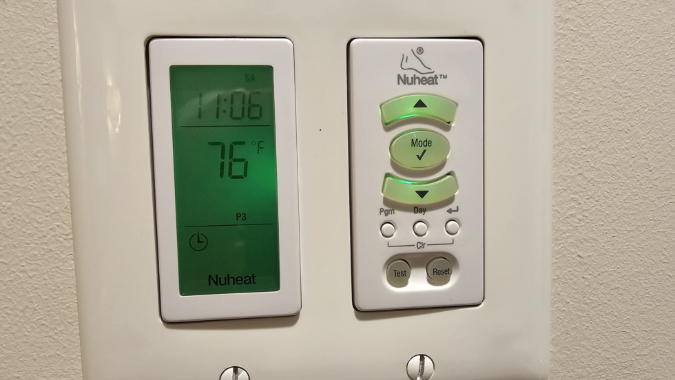 Set the thermostat to 76 to 78 degrees F. Check the seeds in 48 hrs. I've had 99.9 % success with this method. If heated floors are not available then a heat matt will need to be purchased.