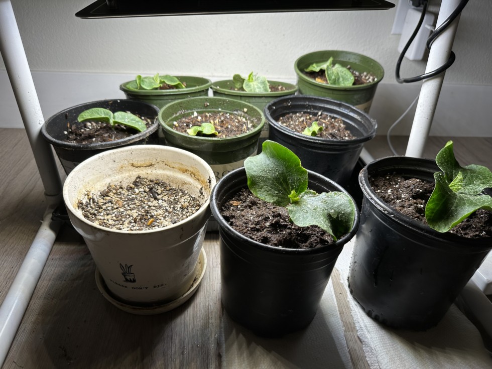 Progress report: Growth! Looks like one dud seed, but I'm not concerned.