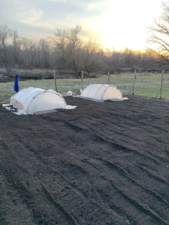 We got the amendments down for the outside patch today, and the hoop houses up with the soil cables in them. Also got most of the wind fence posts up. There's always so much to do in the Spring, so it's nice to getting closer to being done.