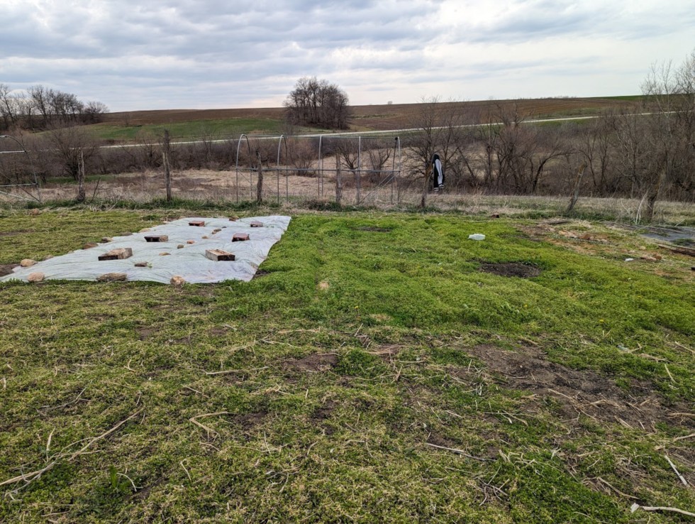 Time to get the fair pumpkin plot ready. Can see the difference here in weed development between those covered with plastic and those that were uncovered.