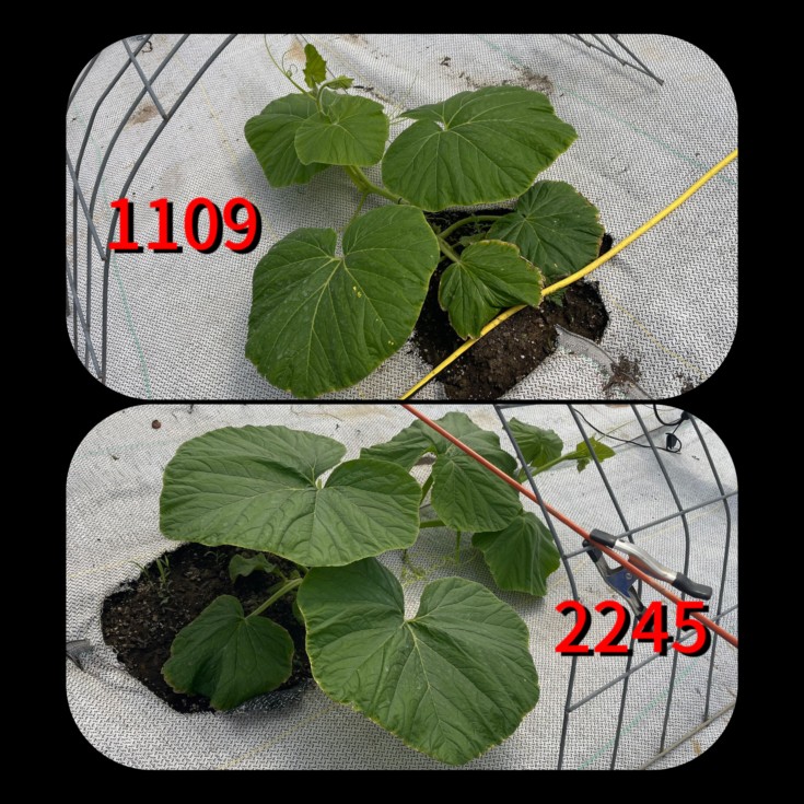 1109 & 2245 are finally down and running. 2245 is in the lead with a 40� main vine. 1109 is bringing up the rear with a 28� main vine.