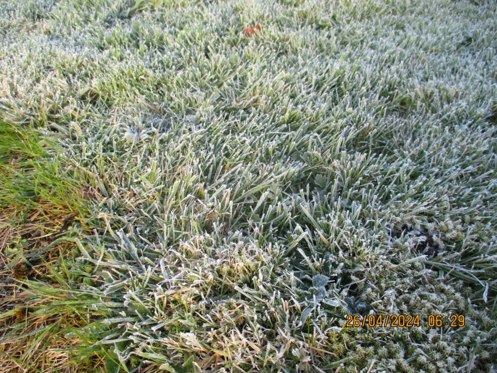 Frost again and cold NE wind, soil temp. less than 50f so still not able to plant anything out in the garden.