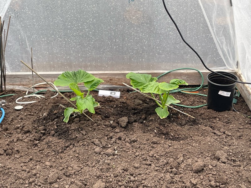Here is the first Sunday entry of the season. It has been cloudy and cool for the first few days of May but the plants have survived. This time of year in our northern climate I am just happy to get the roots expanding. Today we have a high of 48 degrees and rain. Inside the hoop houses the temp is 65 with the soil cables and 250 watt heat lamp.