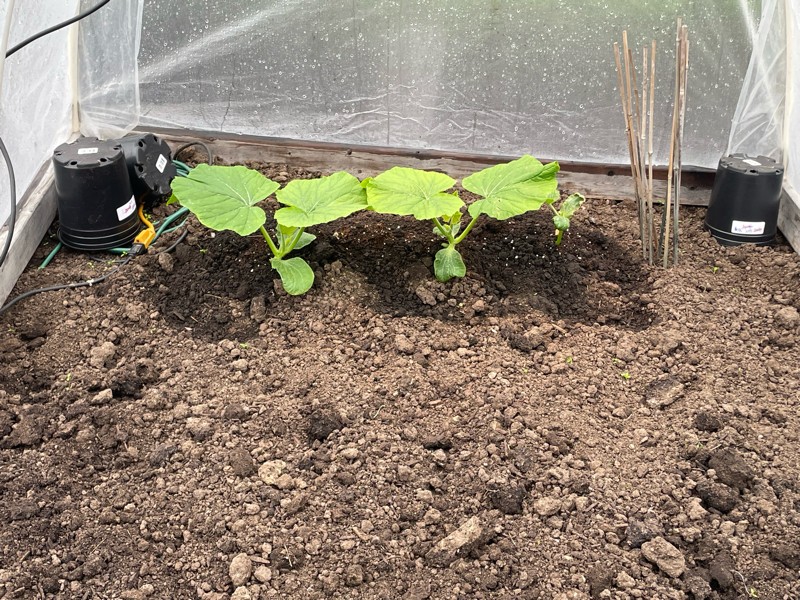 Next is our 400 square foot old patch and the bigger plants are our 691.5 Young (535 Young x 1905 Rose) and the small plant is the 1665 MacDonald (1215 Young x self)