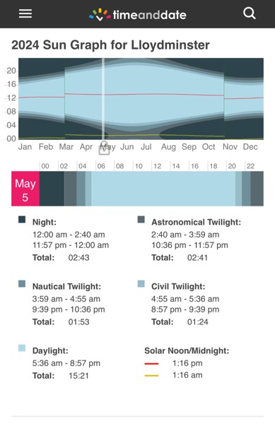 Almost at the time of the year we don't have what is defined as night. Say goodbye to snow until May long weekend. lol. So many times I've had a sunburn under my winter coat.