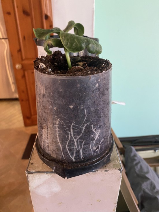 We have been using clear plastic 500 ml to see the roots and cover with a dark one. What we see is that within one day of seeing the cotts the roots are already turning sideways at the bottom of the pot and next day you see this the roots going back up. So is it good to have a ball of roots in the pot? We transfer to larger pots but after ten days think we still have that problem