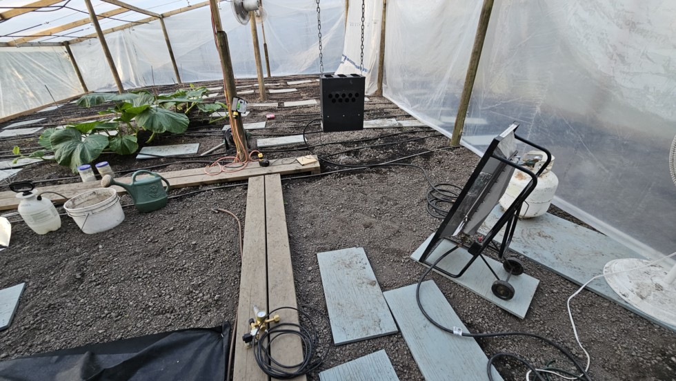 My CO2 generator is an 8 burner model with only 4 burners installed. The other 4 are plugged. I did this hoping I could generate a slow steady amount of CO2 without creating too much heat. It works well but is slow. This morning I installed a space heater which I used last year to make CO2. It can generate 300 to 400 ppm in minutes. Once it gets up to 1200 ppm, it gets turned off and the "real" CO2 generator will maintain.