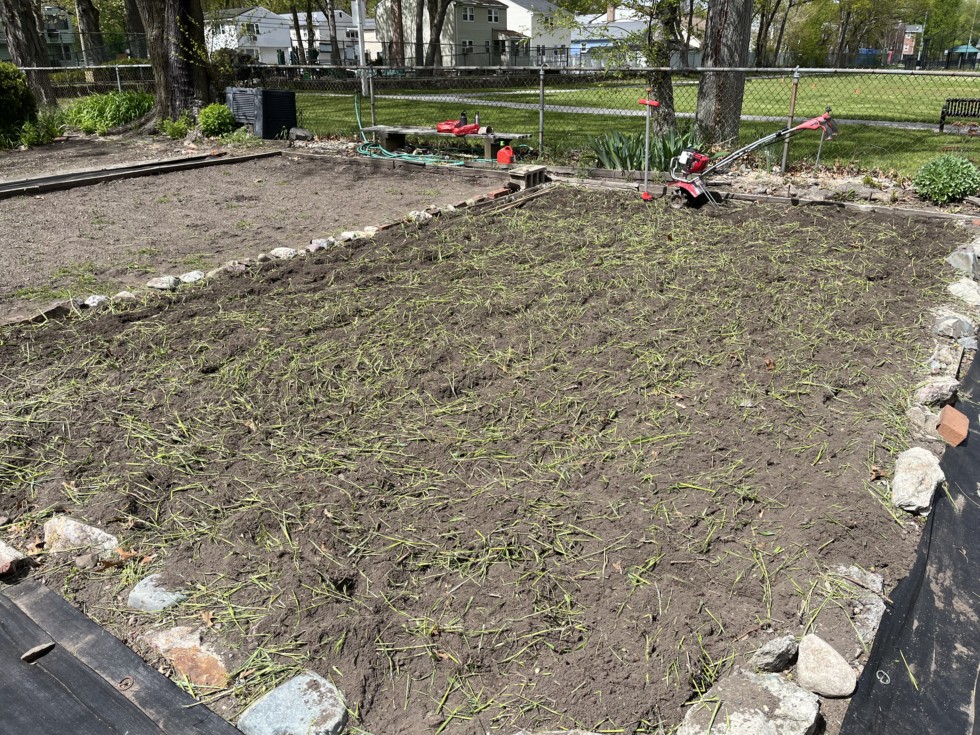 First stop this morning was Home Depot in Quincy. We rented a Mantis Tiller. Light enough to simply carry into the garden. Also used a hand tiller for the edges and rock borders.