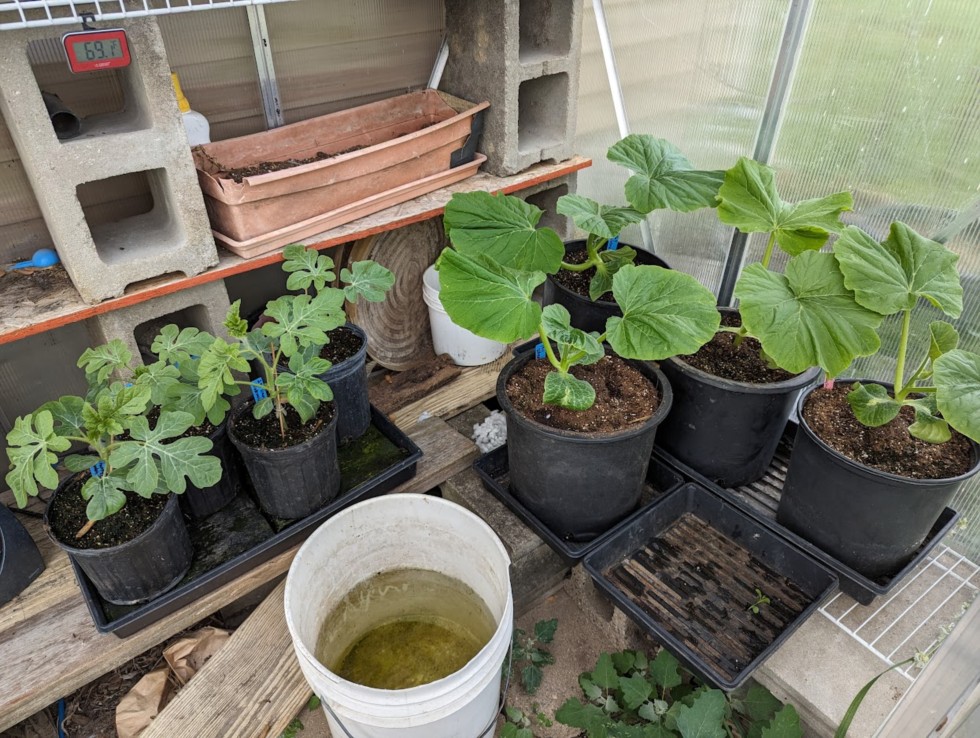 Other plants in the greenhouse looking good but getting too big for their pots. Still been too wet to get the garden ready so will have to figure out a plan to get them in without mudding things up too bad.