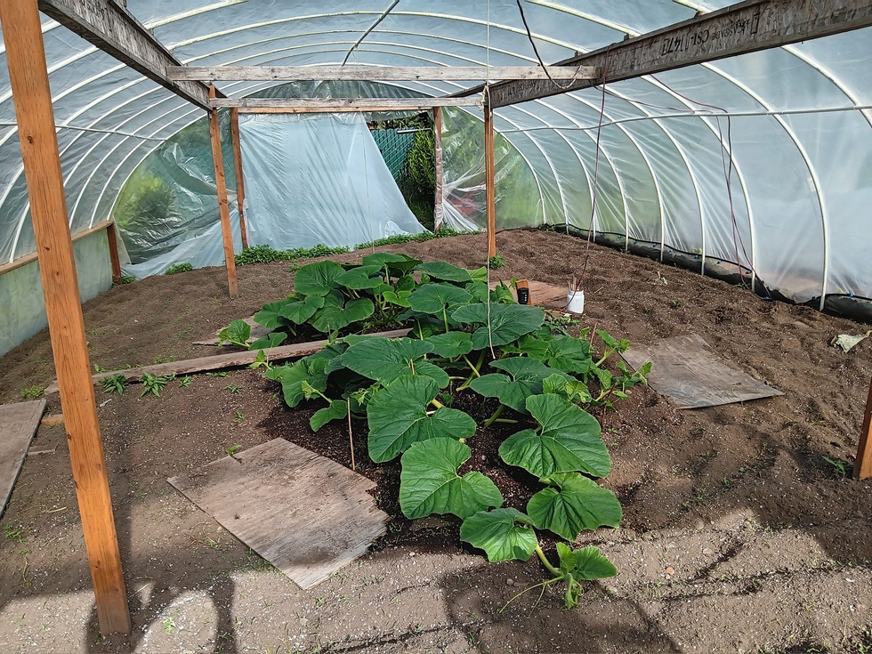 The 639.5 Radach in the foreground with the 1931 Turner beyond. Both plants are about 9 feet long. Pretty much caught up to where last years plants were on this date even with the later start.
