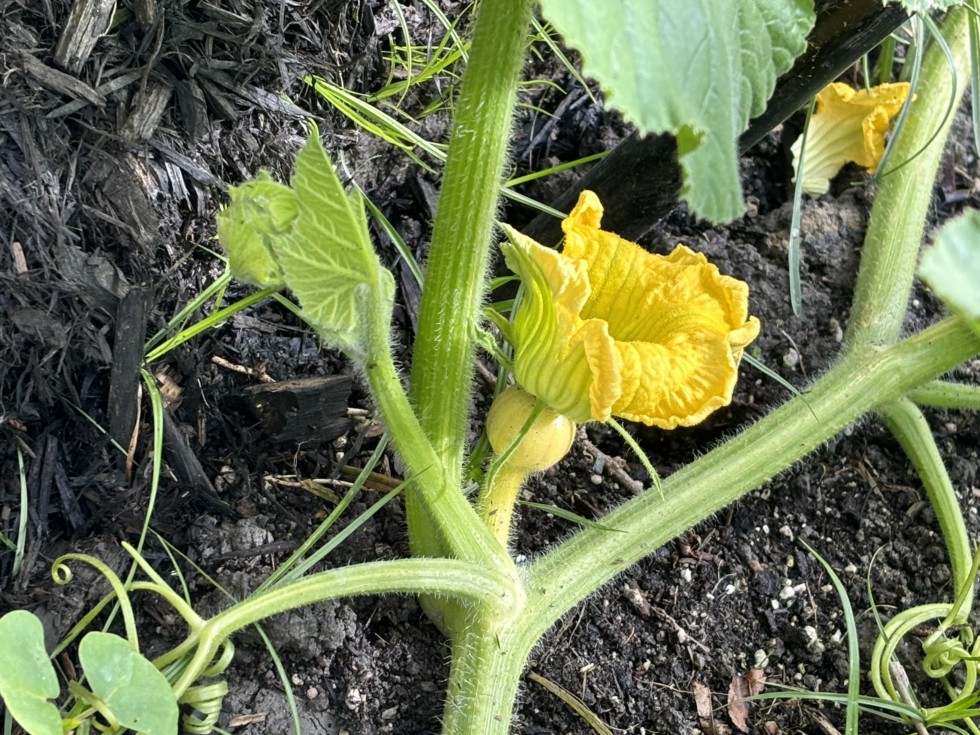 First female opens. On the backup squash plant. Self Sibbed it. This plant will be culled soon and will be a nothing burger but I'm officially growing fruit now. LOL at the calendar. It is saying May 29th.