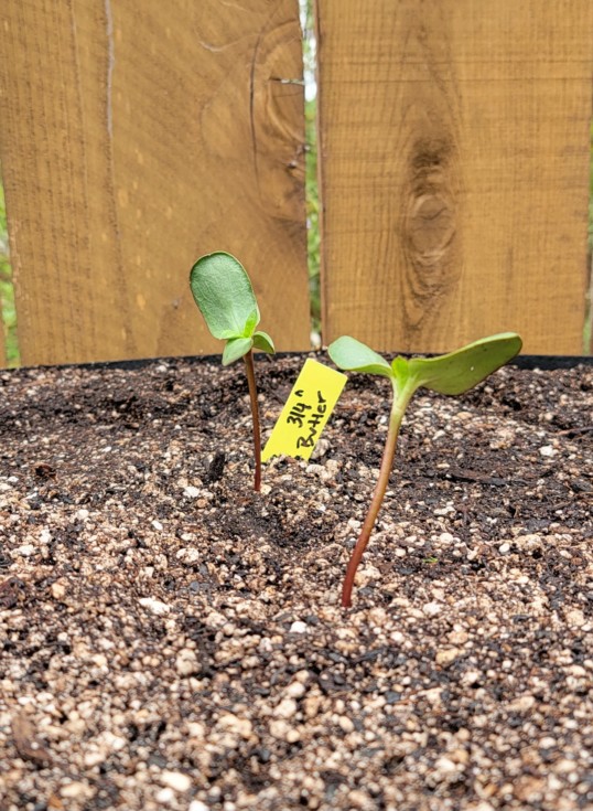 Tall sunflowers went in today. Both seeds from the 314" Butler. Will pair them down to one plant in next few weeks as they compete for the lone spot. Still haven't figured out how to stake them, but have some ideas using the fencing as an anchor.