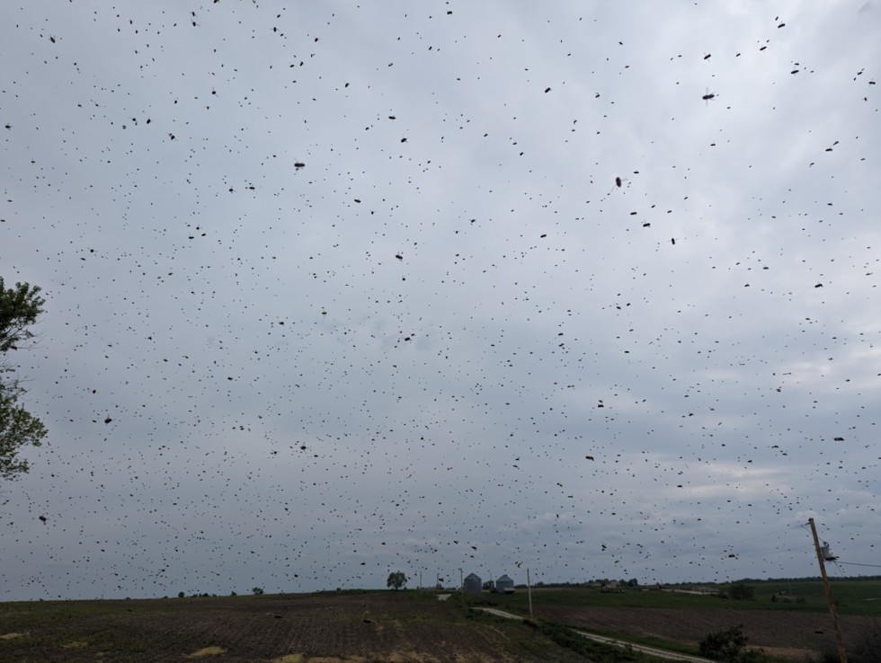 Got home from work and stepped outside of the garage into the middle of a bee tornado. Recognized it as a swarm on the move so was going to follow it to see where they landed.