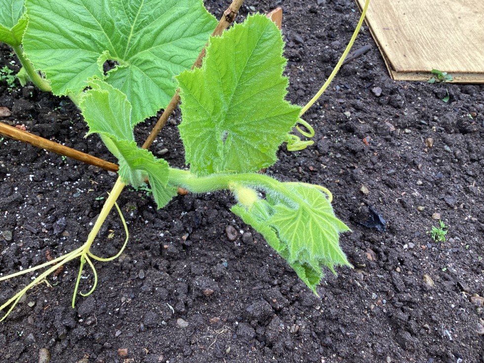 Dave on the 2212 Chan at about 15' on the main and 18 secondaries. I took off the secondary at the flower on this plant and will likely terminate the main vine after the chosen pumpkin on this plant.