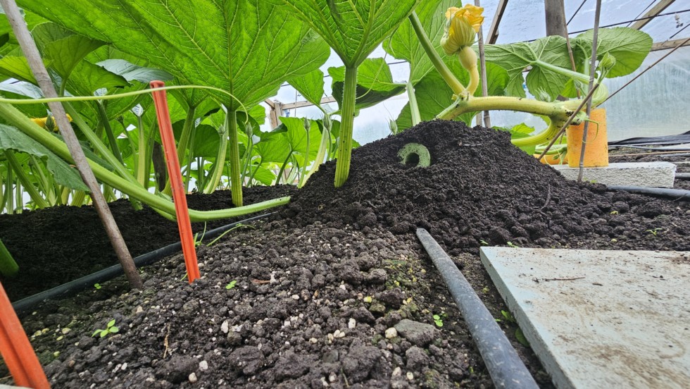 Building a ramp for the main vine . Hopefully this will help the pumpkin's stem final position. I'm just a copycat. Travis looks like he does it lol. Makes sense.