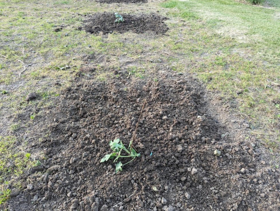Got the second round of watermelons in this week. Shown are the 140.5 Cantrell grafted on bottle gourd root stock in front and the 284 Dawson grafted on rampart gourd rootstock in back.
