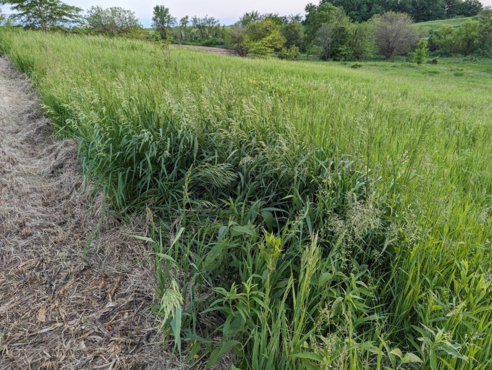 There was a discussion earlier on what to do with vines at the end of the year. Here's a spot I threw a diseased AG last year. Can see how much greener and taller the grass is there from the nutrients leeching out.