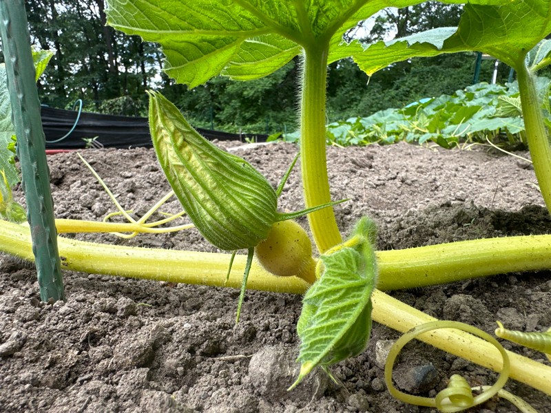 And here is my hopeful keeper opening tomorrow. 22 feet out with a whopping 27 secondaries behind it! I have another pumpkin just coming out of the tip at 24 feet or so which would have 30 sides behind it but that's likely a backup if lobes on this one aren't very good. We shall see although I will pollinate everything