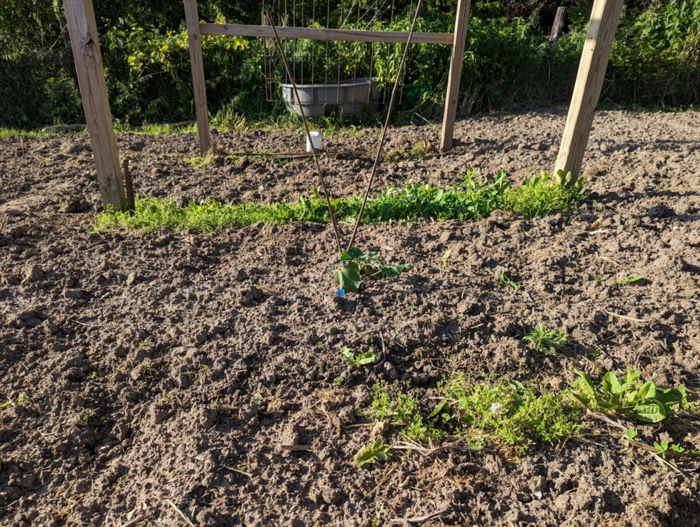 First 159 Jutras died off so has been replaced with a hastily germinated backup. It's still small so under the jug for protection for a few days.