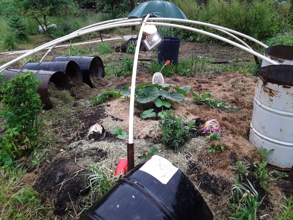 The rain is cold (50's) but am hopeful that if I allow the rain and dampness around the plant it will inspire the worms to do their thing. Six barrels of grass and half a truckload of dairy manure so they've got a lot to eat. I want them to get busy!