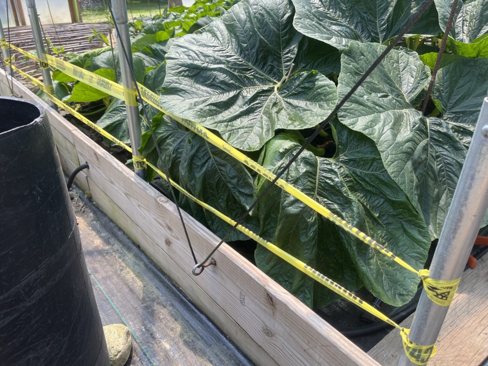 Also using the tape at the sides of the greenhouse to keep them from getting damaged when I drop the curtain when we get bad weather.