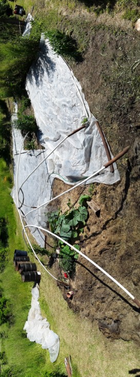 One of the hotter solstices we've had here in Washington. Solarizing the soil where the plants will go.