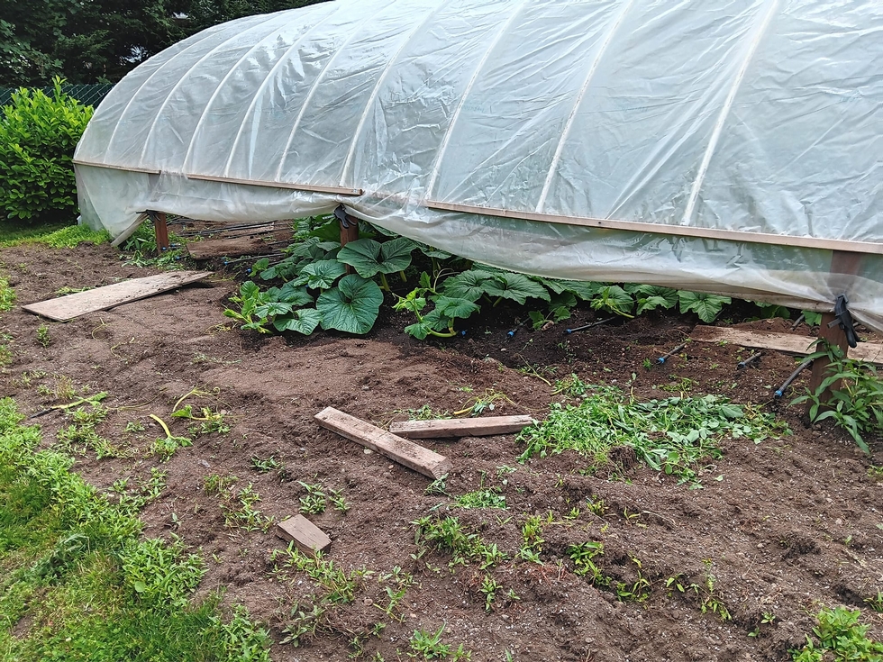 Side vines for both plants are starting to extend past the greenhouse. I am exited to see what this extra plant size will do for my fruit size.