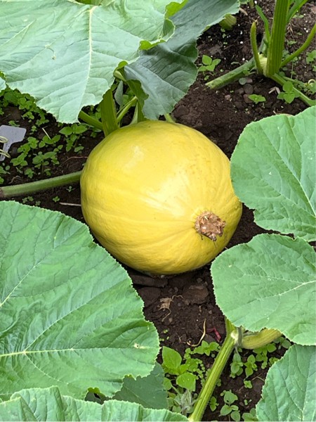 My 421 plant is going to produce a nice orange pumpkin. It's one of my smaller plants at the moment. It's gonna be hard to cut off this early pollination as it's only about 8 feet out or less. But I have done crazy things before. I love the shape and color of this one.